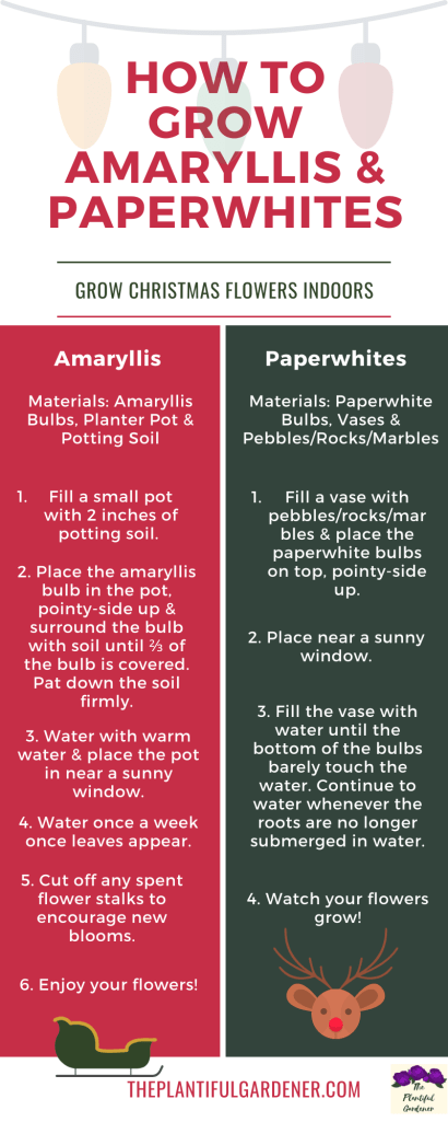 I first found out about amaryllis and paperwhite flowers when I started getting into gardening a few years ago. I had never heard of growing flowers indoors for the holidays. I didn’t even know you could grow flowers inside so easily. Then one day I was watching Garden Answer on YouTube & she did a whole video on growing amaryllis flowers. I knew that I had to get my hands on these bulbs.